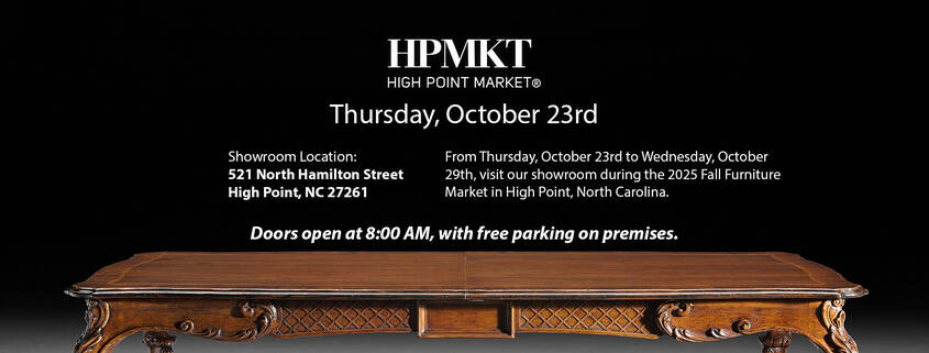 From Thursday, October 23rd to Wednesday, October 29th, we warmly invite you to visit our showroom during the 2025 Fall Furniture Market in High Point, North Carolina. Doors open at 8:00 AM, with free parking on premises.