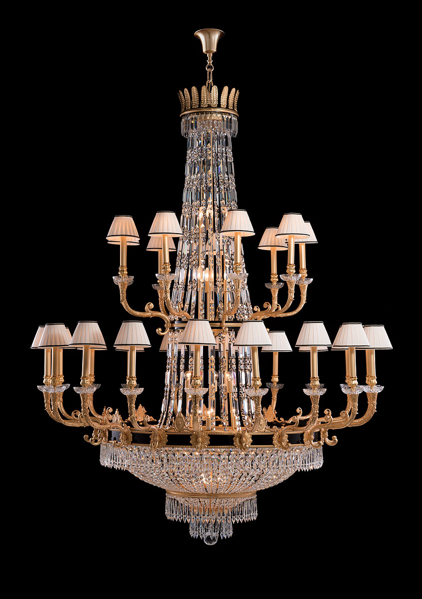 Shades Optional. Shown in finish OF/NST (100). Bronze castings and “Scholer” Crystal. Requires 51 Chandelier base # E12 bulbs. Maximum 50 watts each. Professional installation required.